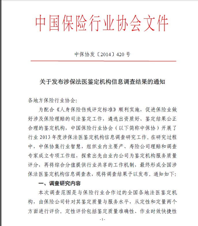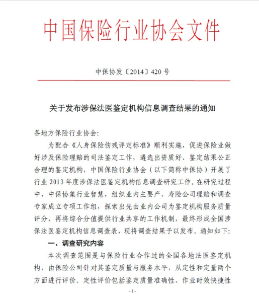 中保協(xié)發(fā)布涉保法醫(yī)鑒定機構(gòu)信息調(diào)查結(jié)果相關(guān)發(fā)文