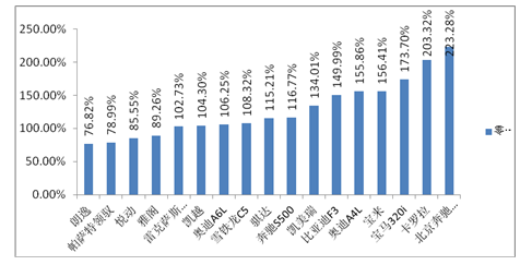 零整比就是汽車零部件與整車銷售價格的比值,購買零整比高的車型意味著在后續使用中要支付相對更高的維修費用。零整比是衡量汽車維修經濟性的重要指標之一,同時也是社會公眾理性購車的重要參考指標之一。國外的研究數據表明正常零整比為300%左右,過高的零整比顯然不合理,有攫取暴利的嫌疑。