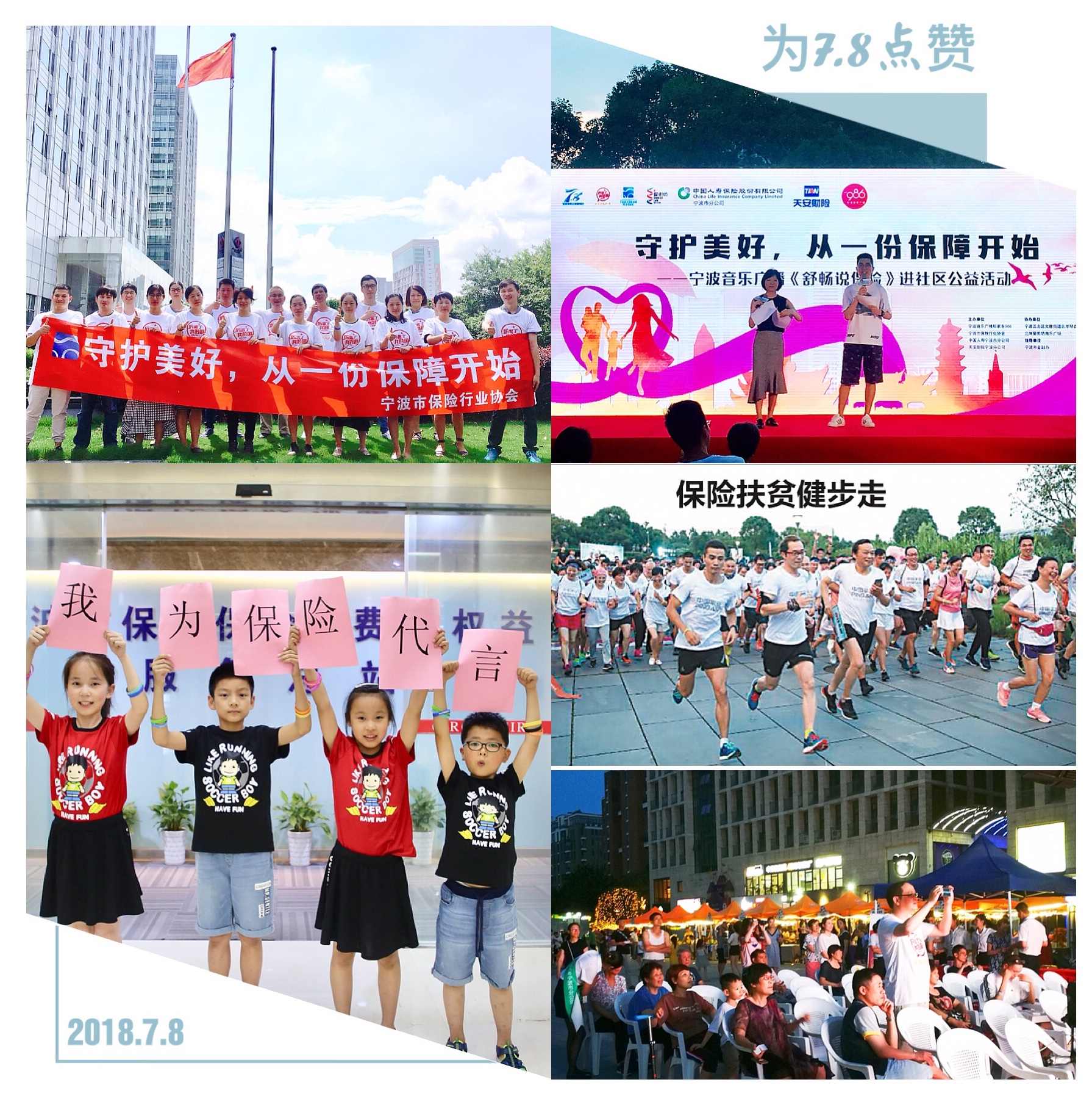 江西保險(xiǎn)業(yè)省市縣同步開展“7.8保險(xiǎn)扶貧健步走”活動,艷陽高照下,傾盆大雨下都有江西保險(xiǎn)人的身影。公司充分動員內(nèi)外勤員工、保險(xiǎn)客戶一起參與健步走活動,讓社會公眾感受江西保險(xiǎn)業(yè)同心共行,為貧困地區(qū)奉獻(xiàn)愛心的決心。活動期間,江西保險(xiǎn)業(yè)累計(jì)捐贈超過2.14億步。同時(shí),各公司創(chuàng)新拍攝“我給7.8點(diǎn)個(gè)贊”手指舞視頻,協(xié)會也邀請省主流媒體參與“發(fā)現(xiàn)保障背后的故事”開放日活動,把保險(xiǎn)的責(zé)任和擔(dān)當(dāng),科技和創(chuàng)新向社會傳播。