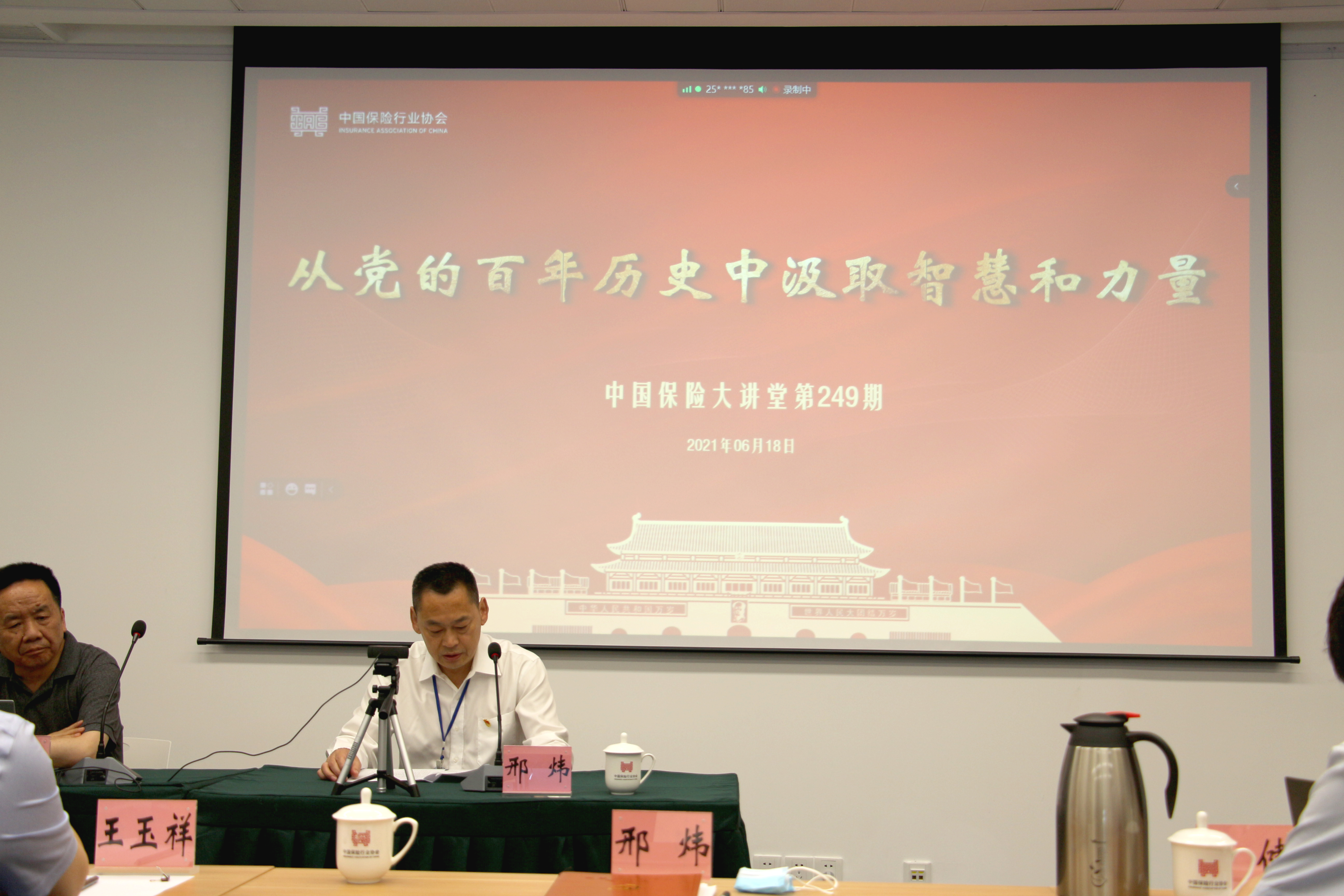 2021年6月18日,中國保險行業協會邀請中央黨校教授以“從黨的百年歷史中汲取智慧和力量”為主題進行黨史學習專題輔導,黨委書記、會長邢煒主持會議